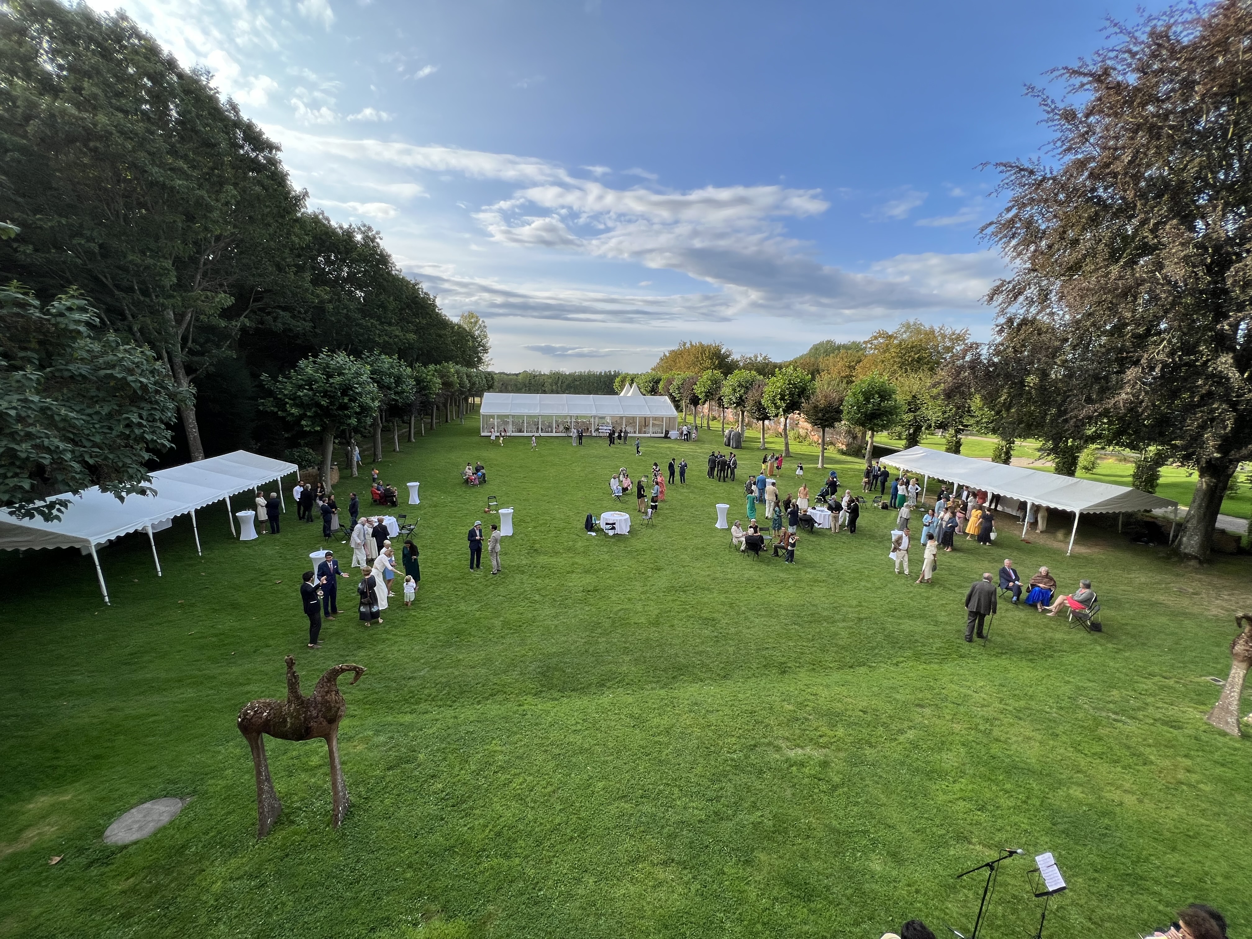 Vous pouvez également organiser un événement en soirée à la belle saison de 18h à 22h : le Jardin offre un espace de 7 hectares, la perspective arrière du château de beaux couchers de soleil. En fonction du nombre de convives, il est nécessaire de prévoir d'installer des tentes, recommandé sur la perspective arrière du château pour créer un écrin délicat vis à vis des visites, et bénéficier du coucher du soleil en soirée.
